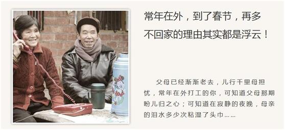 年轻的时候你或许会说外出打工就是好,再也没有父母在耳边唠叨,再也不用担心在网吧通宵会被父母批评。随着年龄的增长,相信你已经过够了在外漂泊打工的生活,相信现在的你最渴望的是一家团聚,最期待的是能够围绕在父母膝下,让他们享尽儿孙绕膝的天伦之乐。